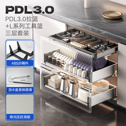 这款拉篮的多项优势更是让人心动:ABS可活动分隔件,坚固耐用;8mm极简边框,提高空间开阔视野;沥水盒易拆易清,便于清洁保护。不管是厨房仍是餐厅,这款东西拉篮都能为您带来极大的便当。