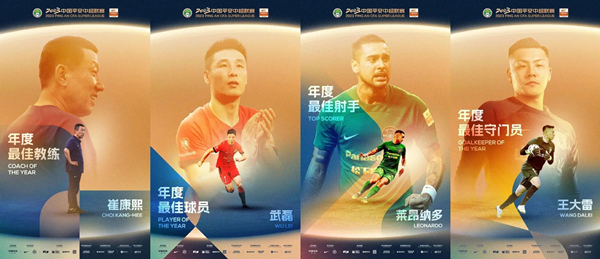 昨日,中超联赛组委会发布了2023赛季中超联赛年度奖项评选成果,在最受重视的几大评选中,上海海港队的国脚武磊中选年度最佳球员、浙江队外援莱昂纳多中选年度最佳射手、山东泰山队韩国籍主帅崔康熙中选年度最佳教练员、泰山队门将王大雷中选年度最佳守门员。